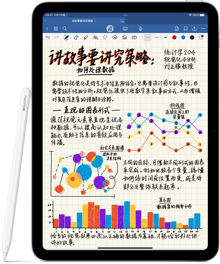 无论是画画、记笔记还是标注文档,Apple Pencil 都有着同样出色的体验:直观、精准、妙不可言。它精准到像素级别,延迟超低,还拥有倾斜角度感应,并可防手掌误触。Apple Pencil 用起来如此得心应手,灵机一动,你就能随手捕捉。
