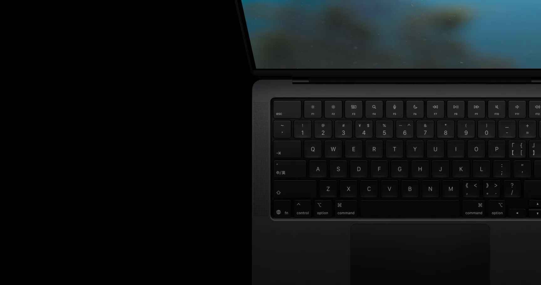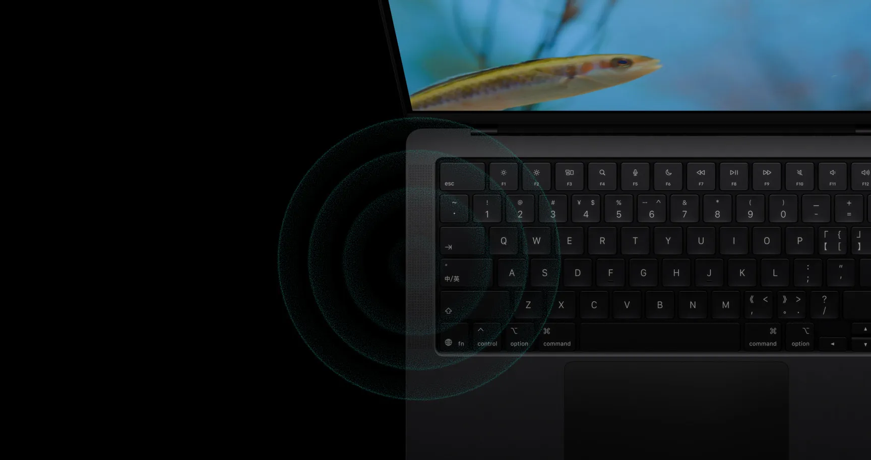 麦克风和扬声器。MacBook Pro 配备录音棚级三麦克风阵列,还有支持空间音频和杜比全景声的六扬声器系统,各种环境下,音响效果都出色。